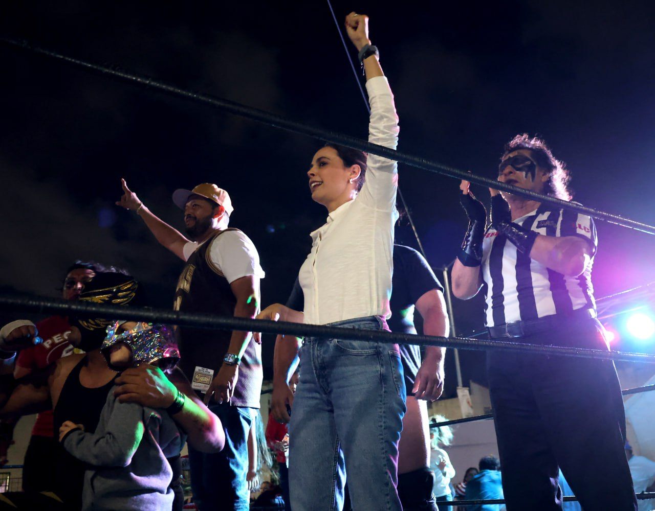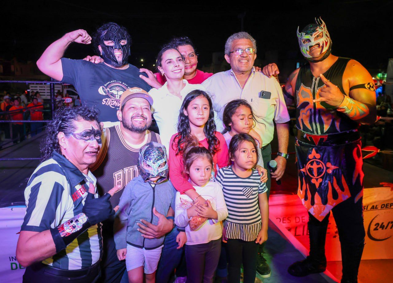 En medio de aplausos, gritos, porras, y la gente que se dividía entre rudos y técnicos, la Primera Autoridad Municipal, acompañada de funcionarios públicos, niñas, niños, jóvenes, madres y padres de familia disfrutaron y se divirtieron con este gran entretenimiento gratuito.