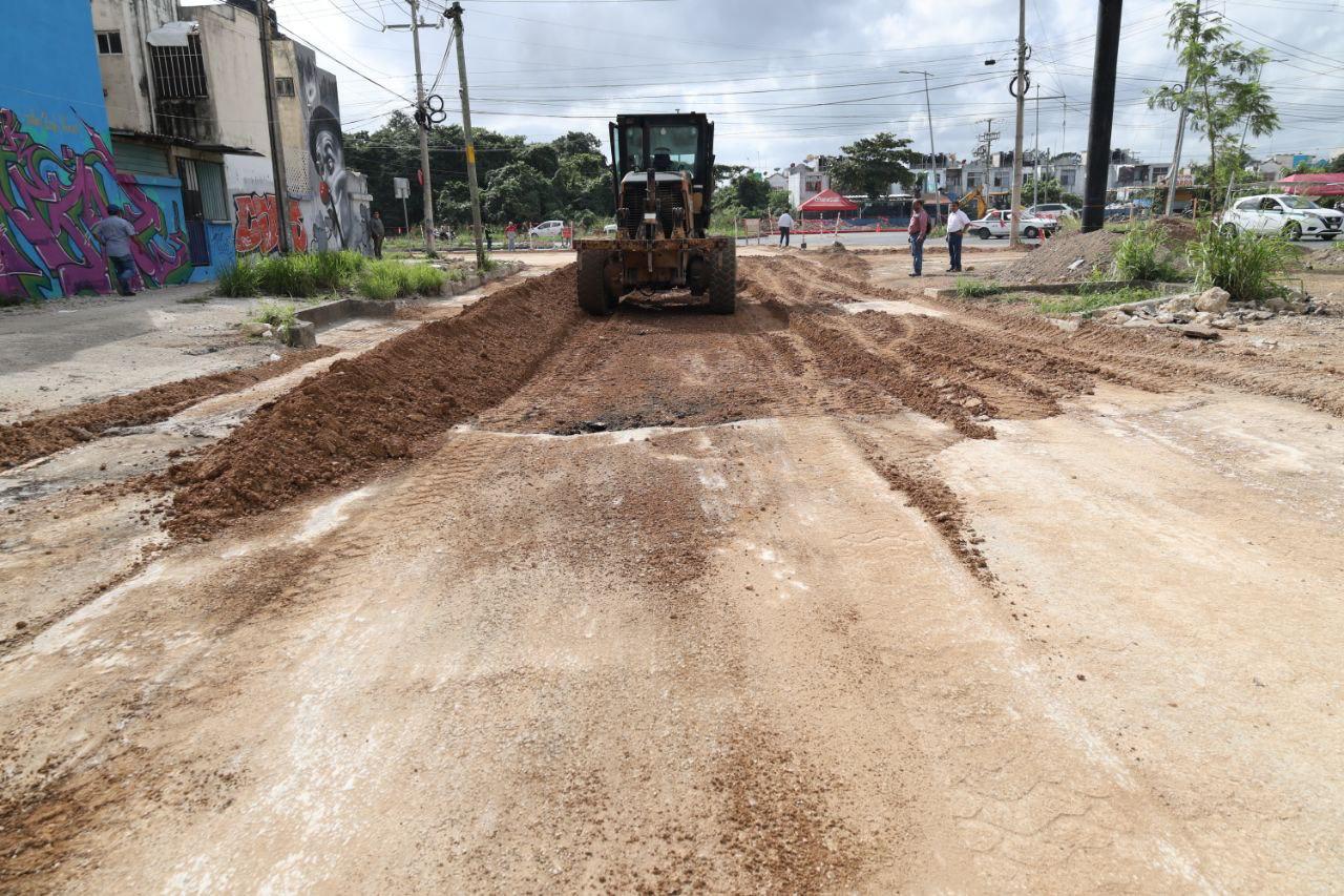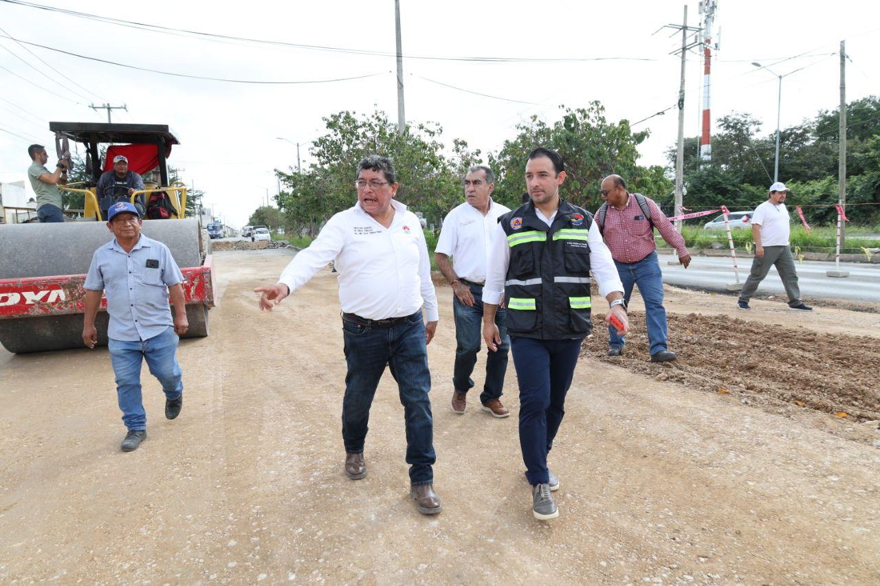 Conforme a las instrucciones de la Presidenta Municipal, Ana Paty Peralta, el secretario general del Ayuntamiento, Pablo Gutiérrez Fernández, acompañado por el director general de Obras Públicas, Julio César Zaldívar Pérez, inspeccionó las labores de rehabilitación y construcción de dichas vías de rodamiento, que contemplan obras complementarias como guarniciones, pozos de absorción, banquetas y rampas de accesibilidad universal.