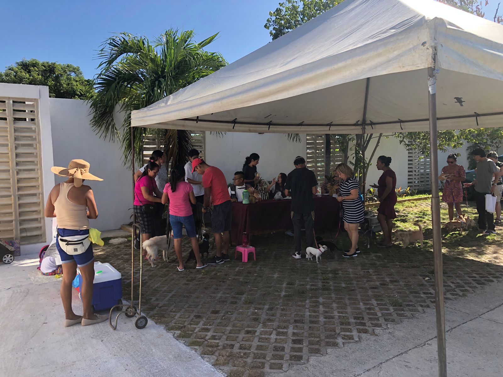 La asistencia médica fue de 9:00 a 13:00 horas en las instalaciones ubicadas en la Avenida Nichupté, Supermanzana 99, Manzana 54, Lote 01, por lo que desde su inicio, se pidió a los ciudadanos que esperaran en fila y en orden su turno de pasar a la mesa de registro para obtener primeramente los datos generales de cada animalito para llevar un control de los pacientes.