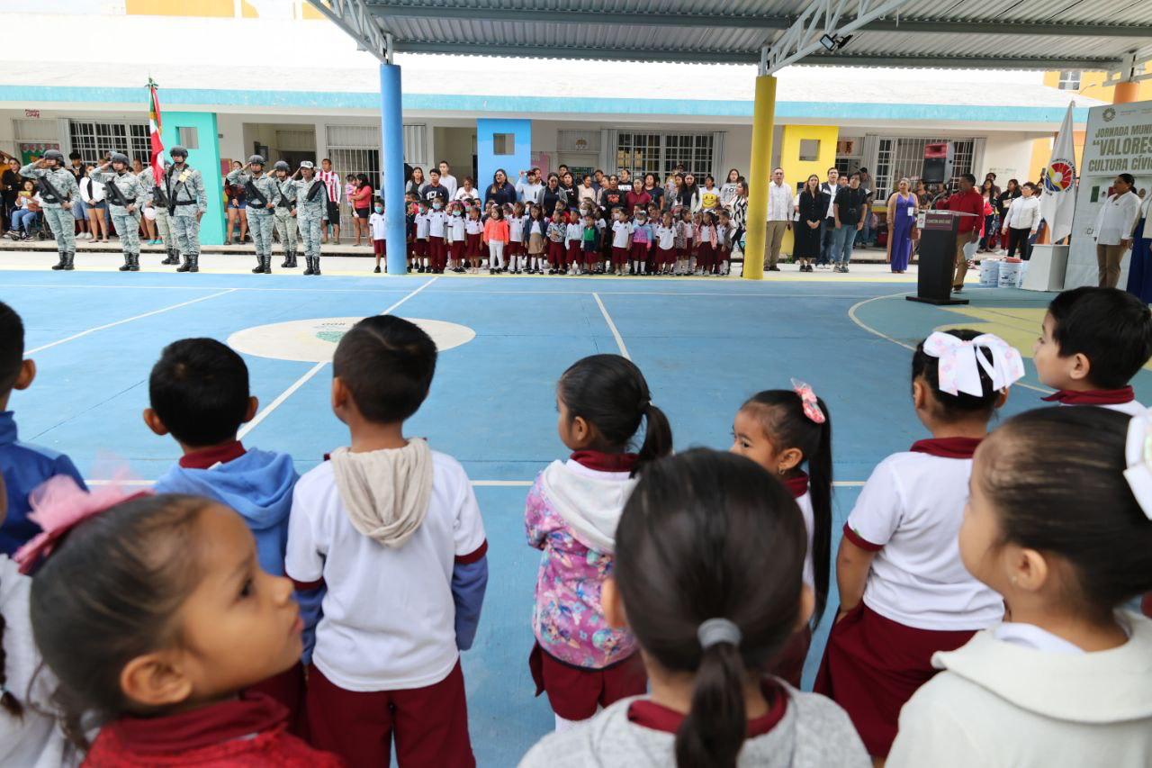 Aunado a ello, las autoridades encabezaron una ceremonia cívica con el objetivo de reforzar los valores y la identidad como mexicanos, con un homenaje, en el que rindieron honores a la bandera, y entonaron los himnos Nacional Mexicano y de Quintana Roo.