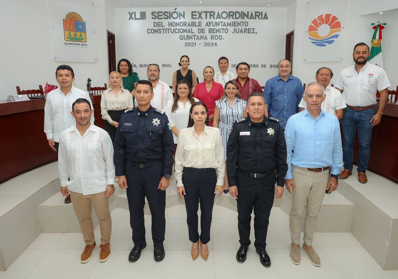 Cancún, Q. R., a 02 de febrero de 2024.- Con la aprobación unánime de los integrantes del Cabildo, el gobierno de Benito Juárez nombró al Capitán de Navío Carlos Ernesto D´amiano Sumuano como Secretario Municipal de Seguridad Ciudadana y Tránsito, bajo el objetivo de fortalecer las acciones y el trabajo coordinado en la construcción de la paz, la prevención del delito y atender los orígenes de las violencias.